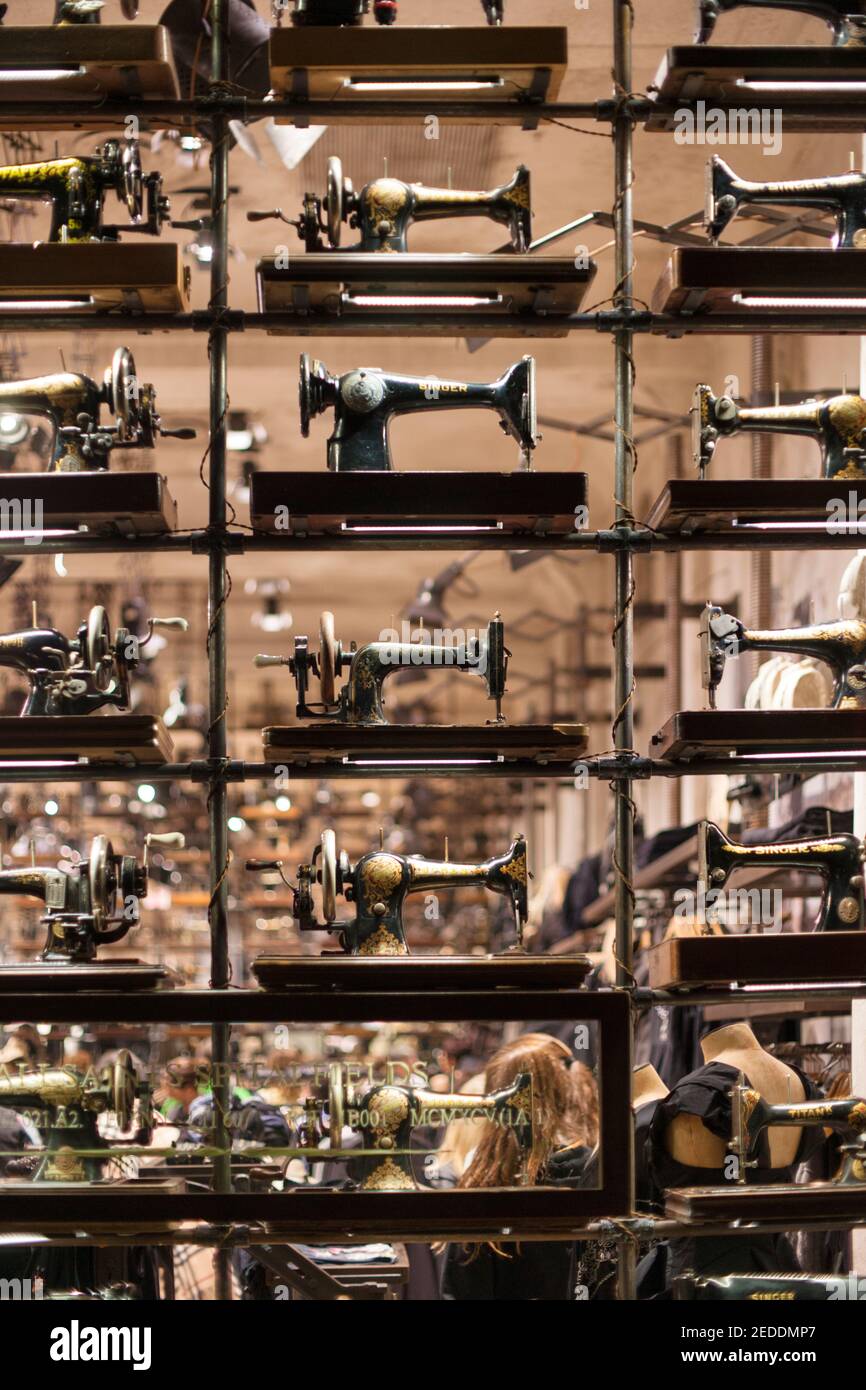 Window Display With Vintage Sewing Machines At The Allsaints Spitalfields Store In The Lincoln Road Mall Miami Beach Stock Photo Alamy